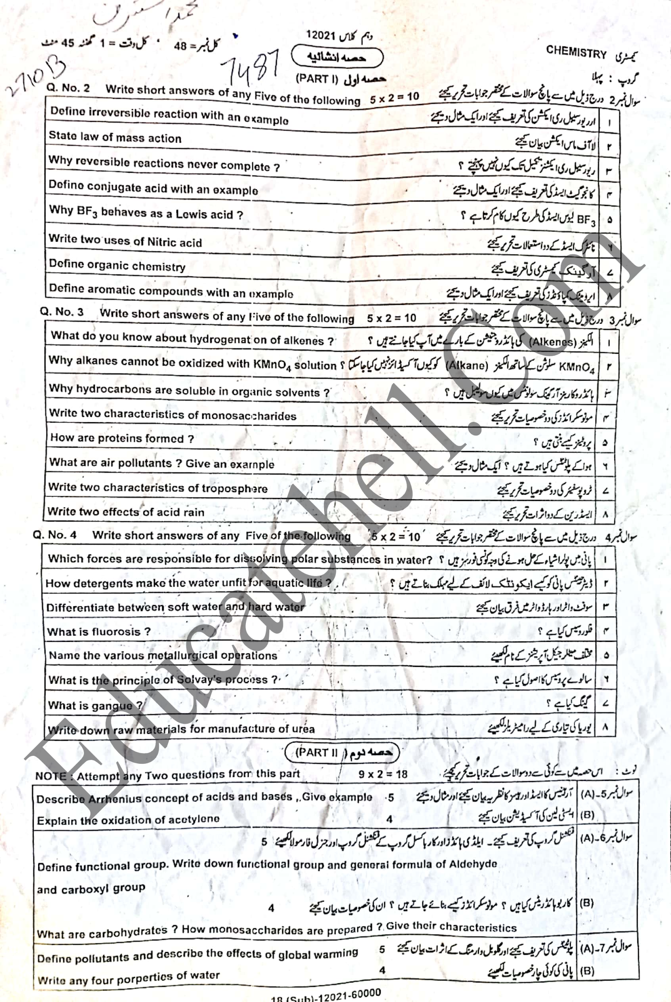 | 10th Class – Matric Chemistry Notes – Guess Paper pdf (2023) | (Download Pdf) |