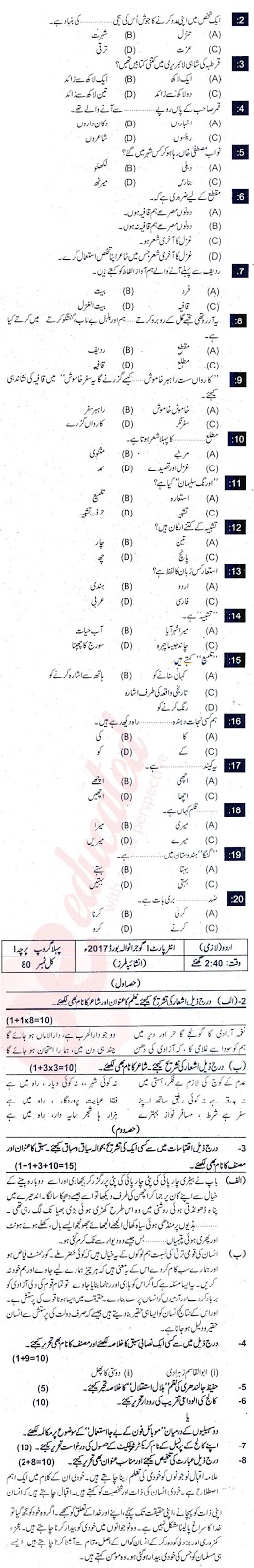 • 2017 FSC (11th Class) Urdu Past Papers Gujranwala Board
