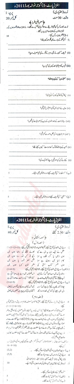 • 2011 FSC (11th Class) Urdu Past Papers Gujranwala Board