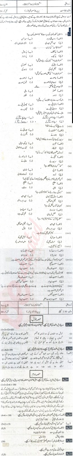 • 2015 FSC (11th Class) Urdu Past Papers Gujranwala Board