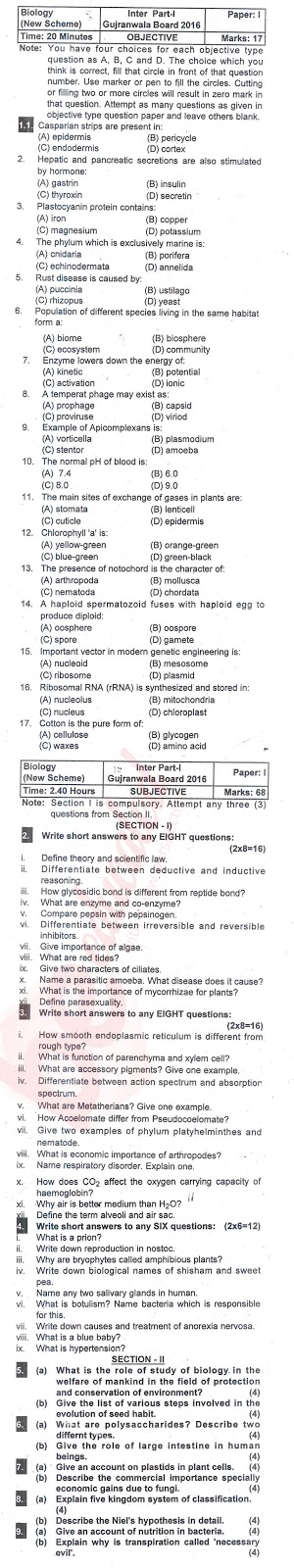 Download FSC Part 1 Biology Past Papers of BISE Gujranwala Board for All Past Years till 2017 only at this page of Jano.Com.Pk as we have uploaded FSc part 1 biology past papers Gujranwala board for first and second group and for all past years right below.