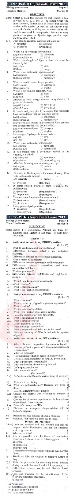 - 2013 FSC (11th Class) Biology Past Papers Gujranwala Board