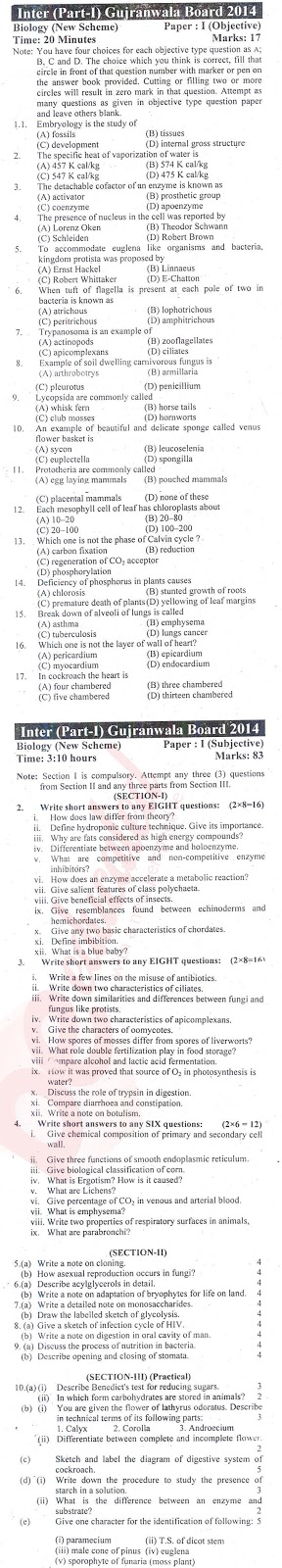- 2014 FSC (11th Class) Biology Past Papers Gujranwala Board